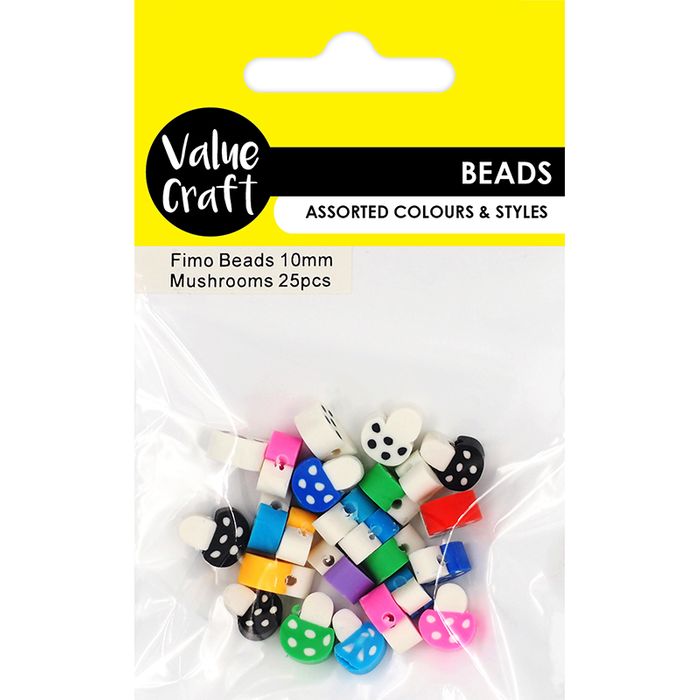 - POLYMER CLAY BEADS 10MM MUSHROOMS 25PCS
