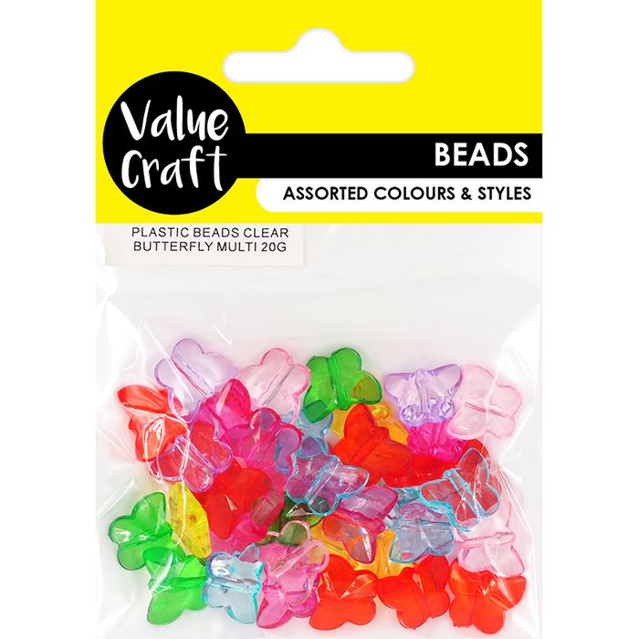 - PLASTIC BEADS CLEAR BUTTERFLY MULTI 20G