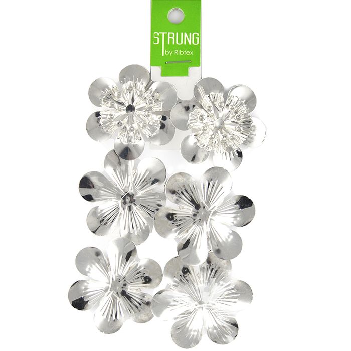 - Strung Pressed Metal Round Flower Silver
