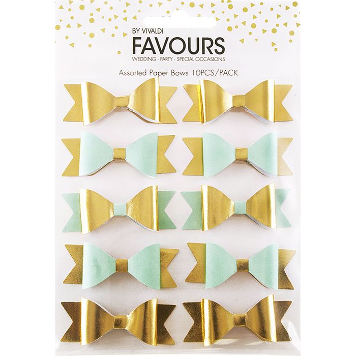 - Fav Paper Bow Mint Gold Foil 10Pc