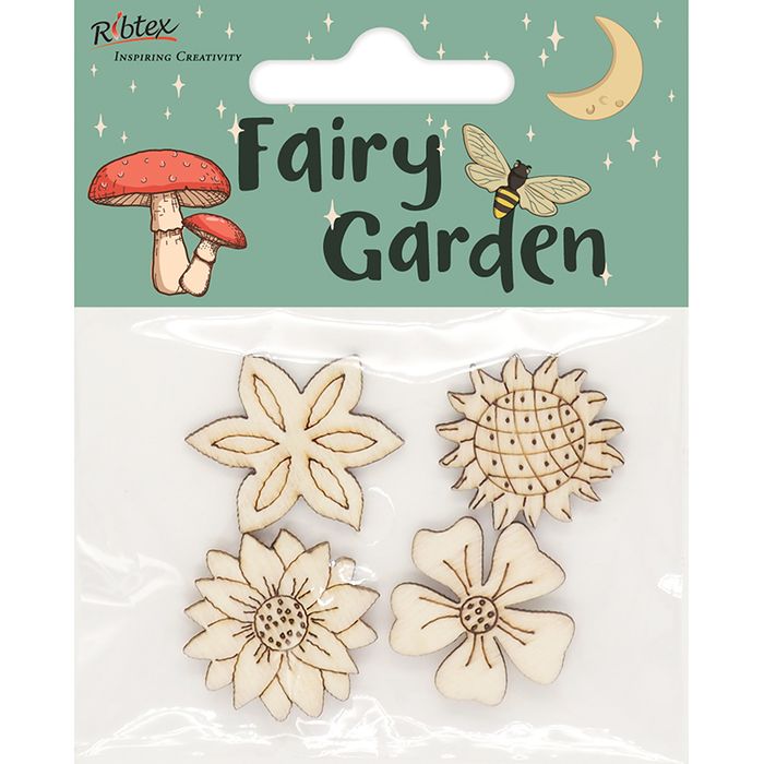 - WOOD SHAPES ENGRAVE FLORAL 4PCS