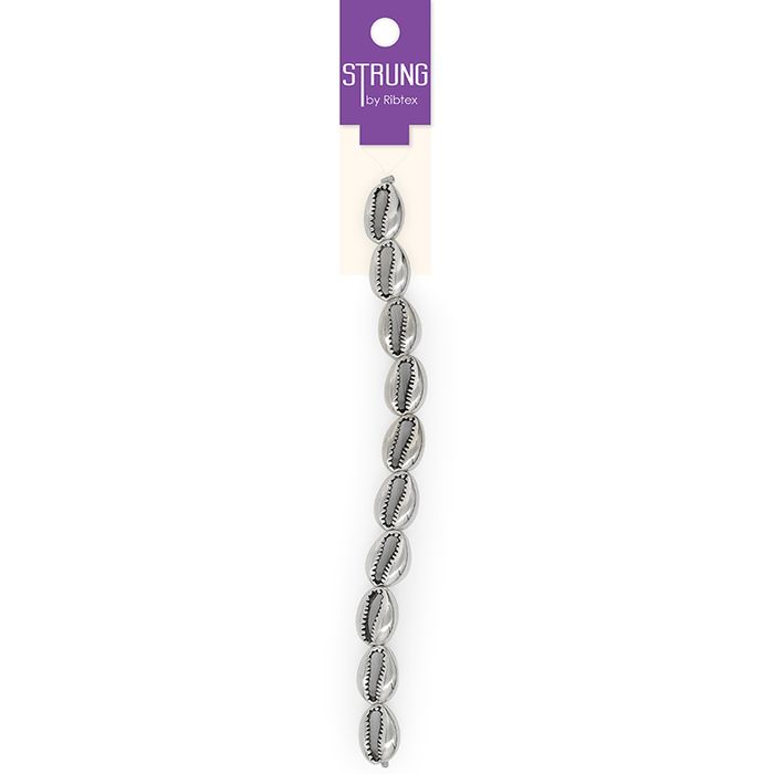 - BEADS METAL STRUNG COWRIE SHELL SLV 18MM