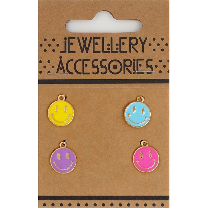 CHARM ENAMEL SMILEY 4PC GOLD MULTI