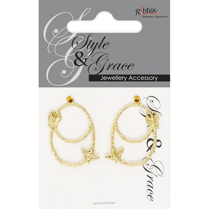DECOR OVAL BFLY EARRING 28MM 2PC SG