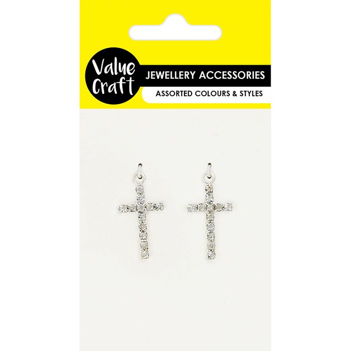 CHARM DIAMANTE CRUCIFIX 3.5CM SILVER 2PC
