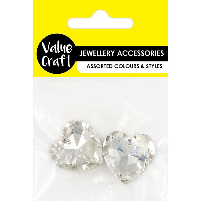 - JF PENDANT 3CM GLASS FACET HEART SLV 2PC