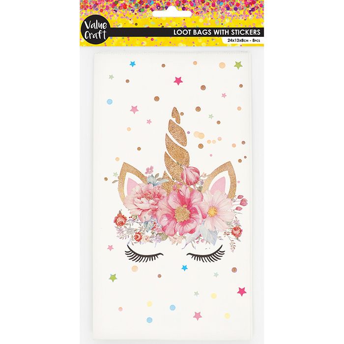 - PAPER LOOT BAGS W STICKERS UNICORN 8PCS