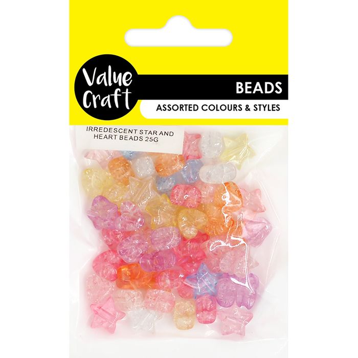 - IRREDESCENT STAR AND HEART BEADS 25G
