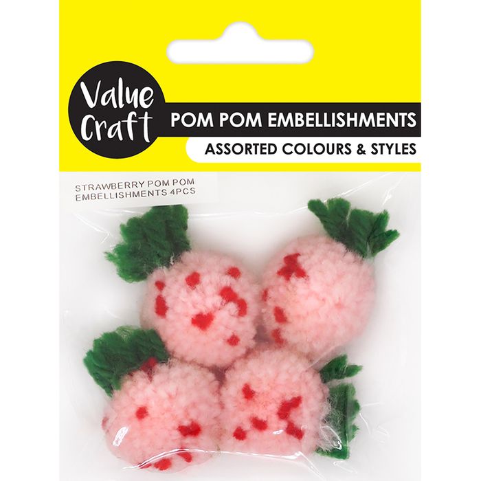 - Strawberry Pom Pom Embellishments 4Pc