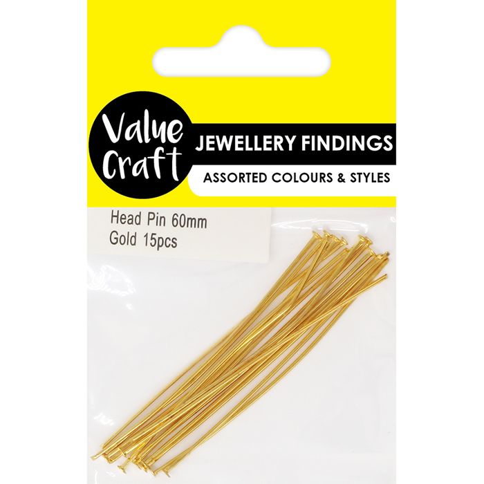 - JF HEAD PIN 60MM GOLD 15PCS