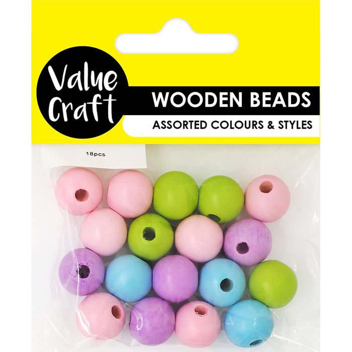 - BEAD WOOD ROUND 15MM PASTEL 18PCS