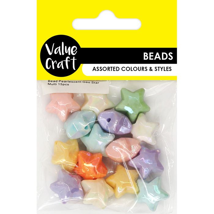 - BEAD PEARLESCENT GEO STAR MULTI 15PCS