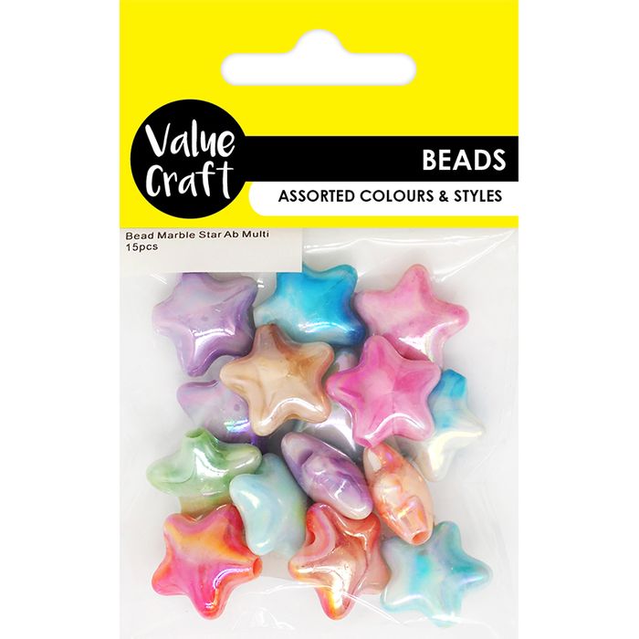 - BEAD MARBLE STAR AB MULTI 15PCS