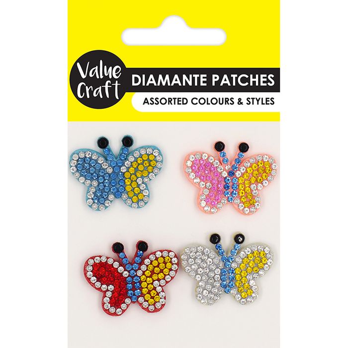 - DIAMANTE FELT PATCHES BUTTERFLY 4PCS