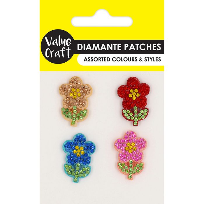 - DIAMANTE FELT PATCHES FLOWER 4PCS