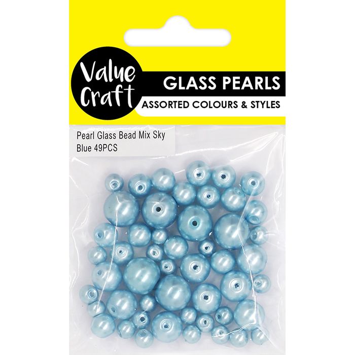- PEARL GLASS BEAD MIX SKY BLUE 49PCS