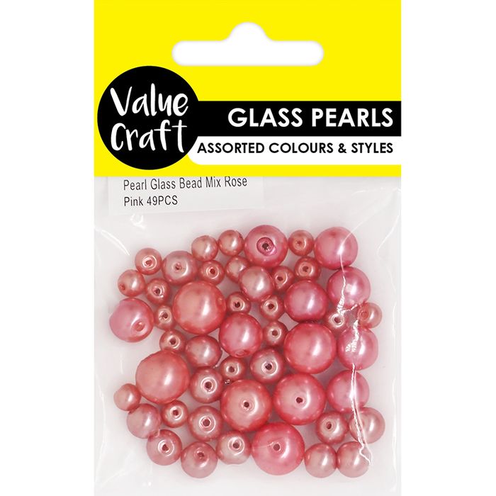 - PEARL GLASS BEAD MIX ROSE PINK 49PCS