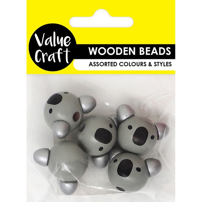 - BEAD WOODEN KOALA HEADS 5PCS