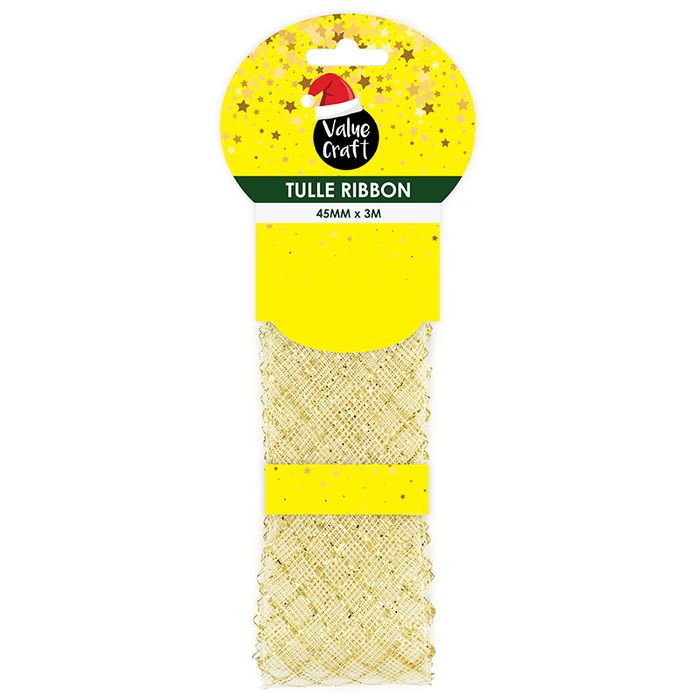 - XMAS METALLIC TULLE RIBBON GOLD 3M
