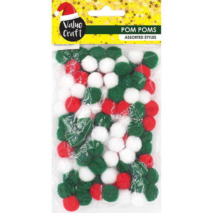 XMAS POM POM TRAD RED GREEN WHITE 100PC