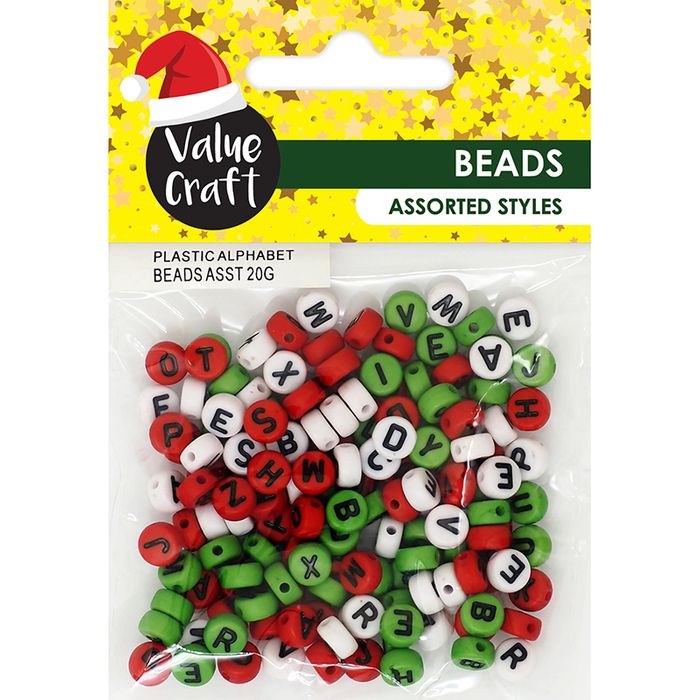 XMAS PLASTIC ALPHABET BEADS ASST 20G