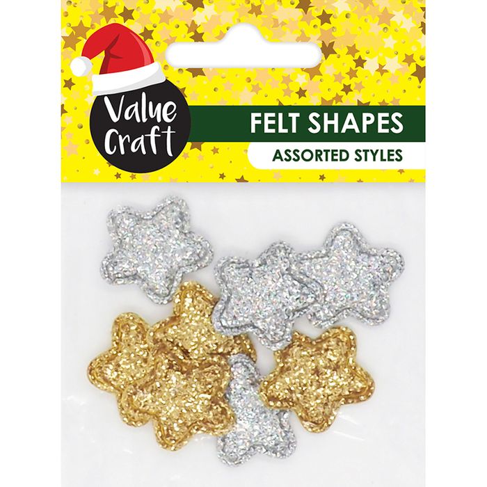 - XMAS FELT GLITTER SHAPES MINI STARS 8PCS