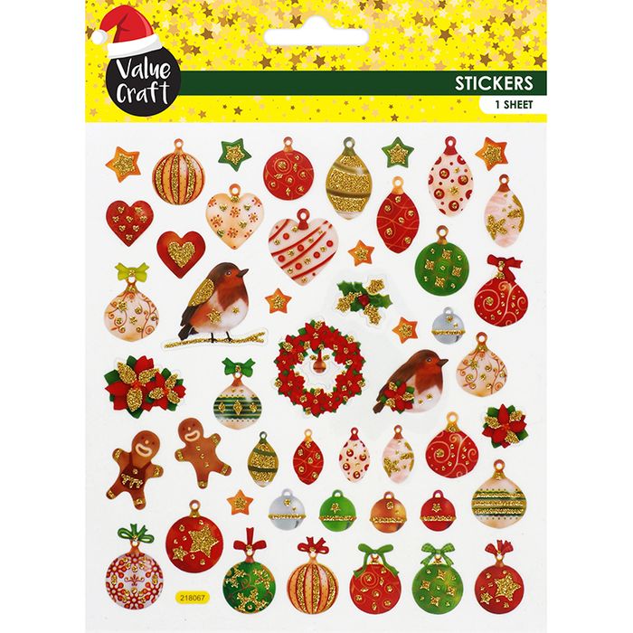- XMAS GLITTER STICKERS BAUBLES MIX 1SH
