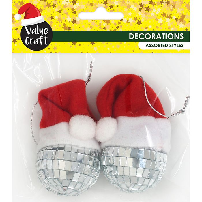 - XMAS DISCO BALL SANTA HAT ORNAMENTS 2PCS