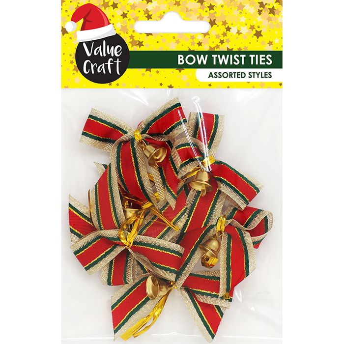 - XMAS METALLIC TWIST TIE BOWS W BELLS 6PC