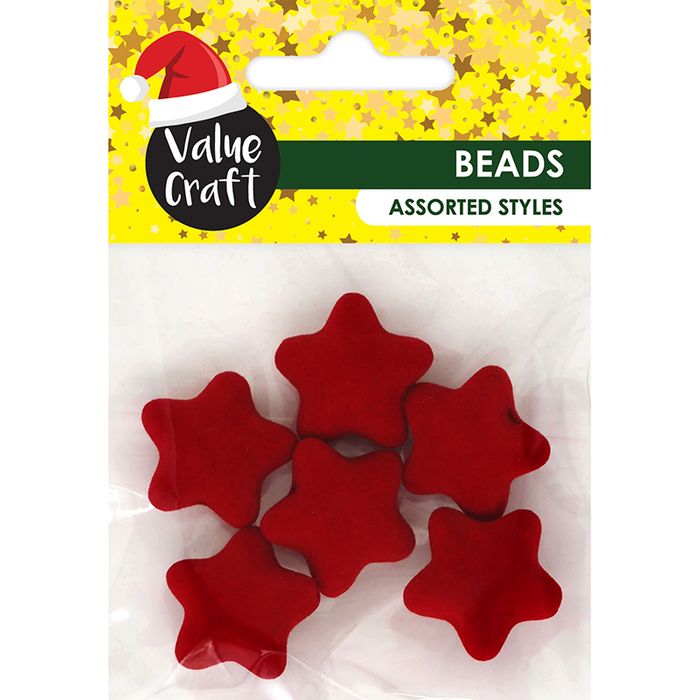 XMAS VELVET 23MM STAR BEADS RED 6PCS