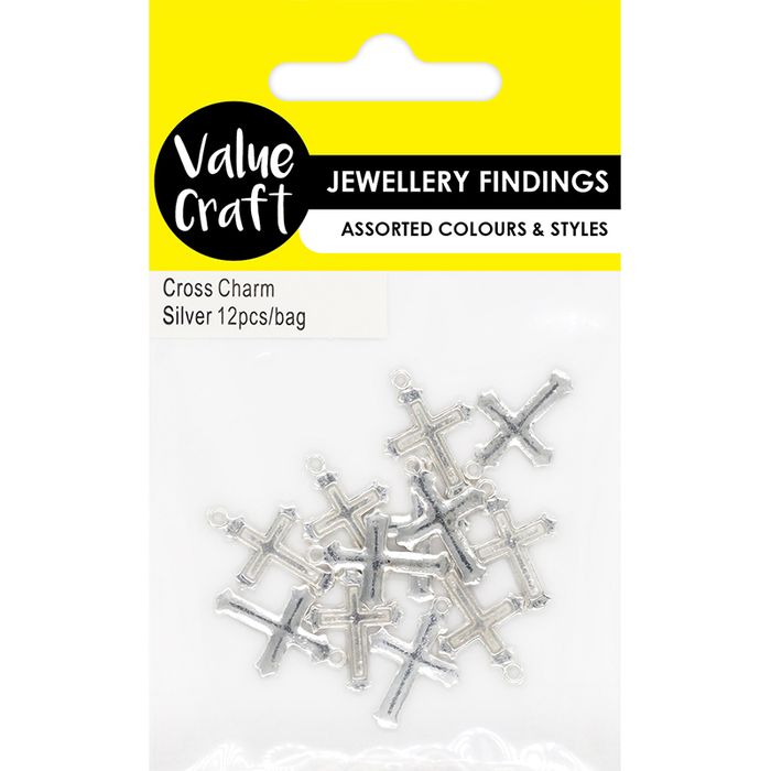 CHARM METAL CROSS SILVER 12PC