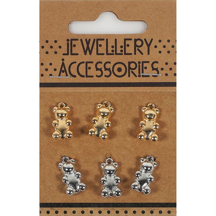 CHARM CARD 6PC GOLD SILVER TEDDY BEARS