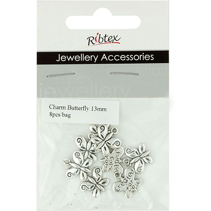 Charm - Butterfly 13mm Dark Silver 8Pcs