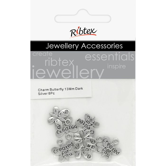 Charm - Butterfly 13mm Dark Silver 8Pcs