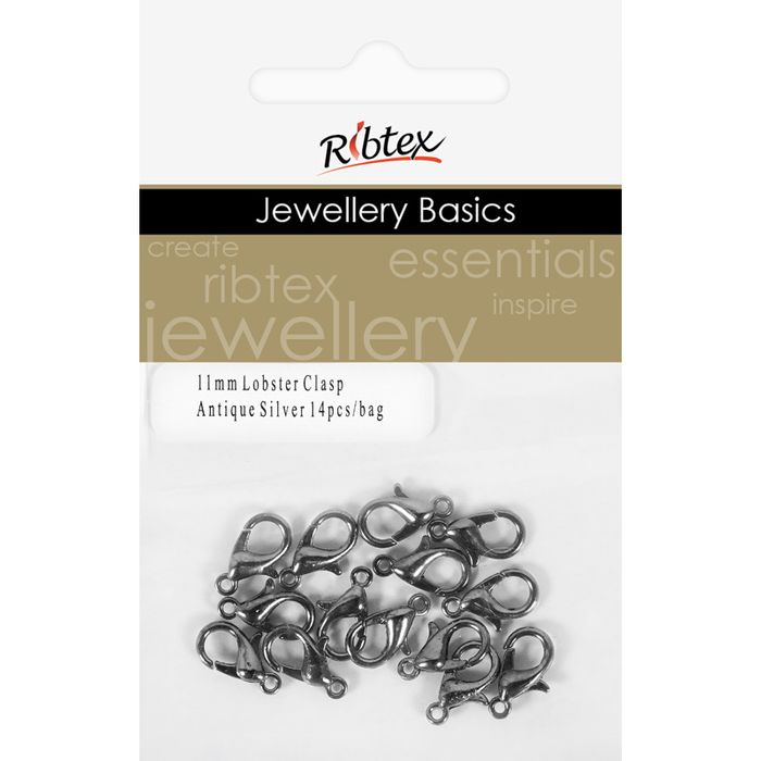 - Clasp Lobster 11mm Antique Silver 14Pcs
