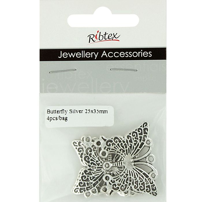 Feature Butterfly 25X35mm Silver 4Pcs
