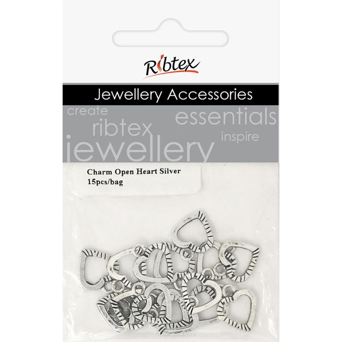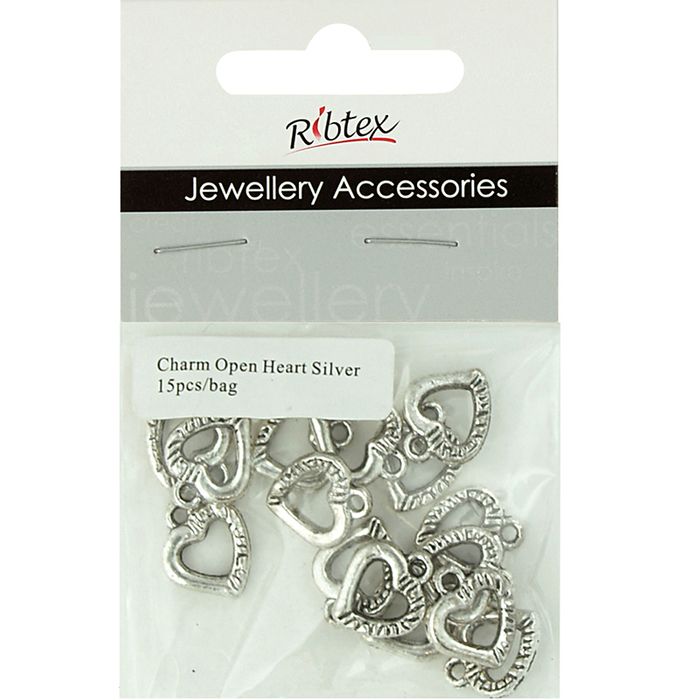 Charm - Heart Open 12x13mm Silver 15Pcs