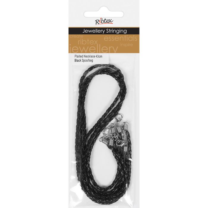 - Jf Plaited Necklace-Clasp 43Cm Black 3Pc