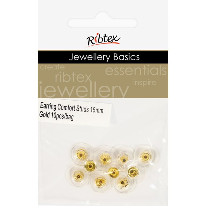 Jf Earring Comfort Studs 15Mm Gold 10Pcs