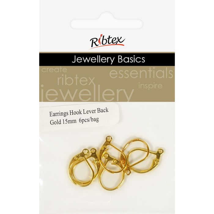 Earring Hooks Lever Back 15mm Gold 6Pcs