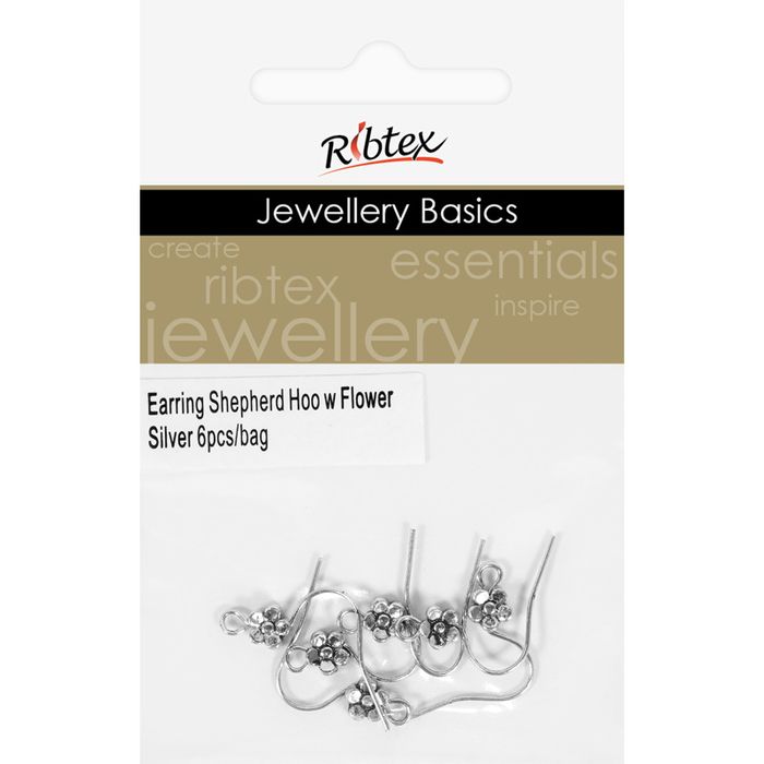 Earring Shepherd Hooks Flower Silver 6Pc