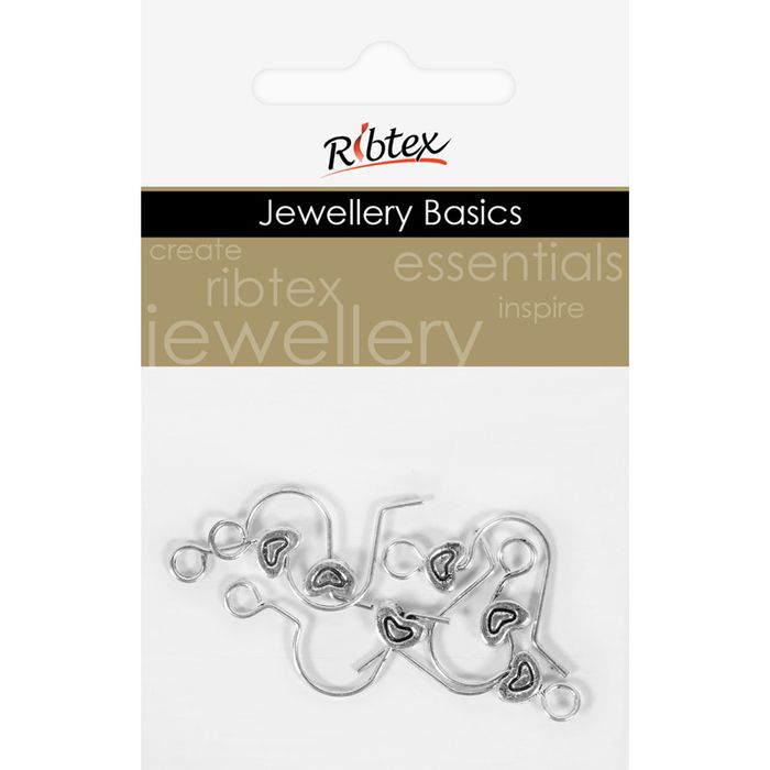 Earring Shepherd Hooks Heart Silver 6Pcs
