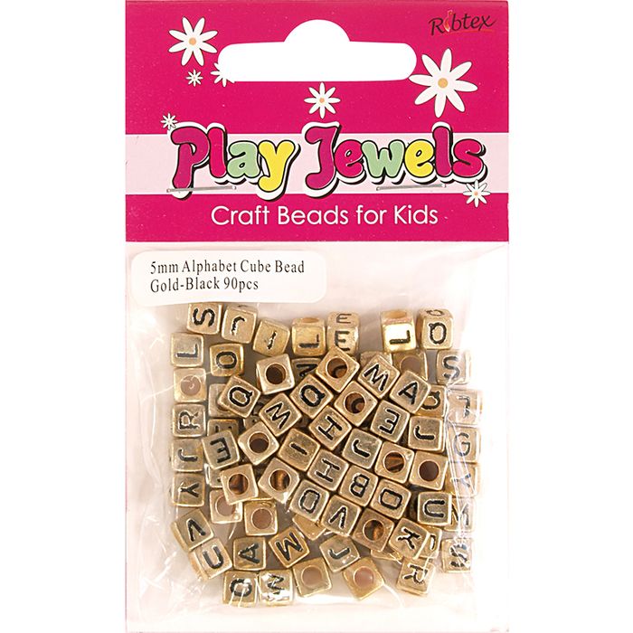 Bead 5Mm Alphabet Cube Gld-Blk 90Pcs