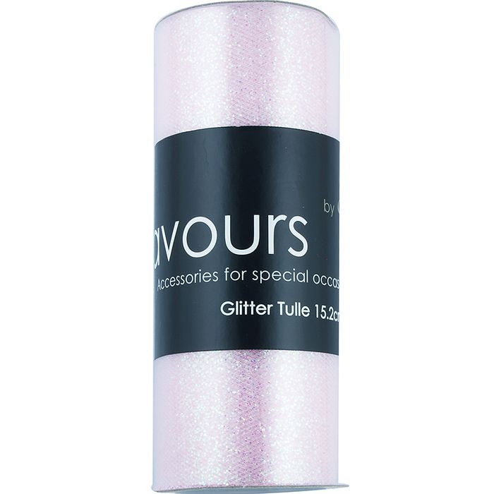| 15.2cm Nylon Tulle Ribbon w Glitter 18.2m Roll |