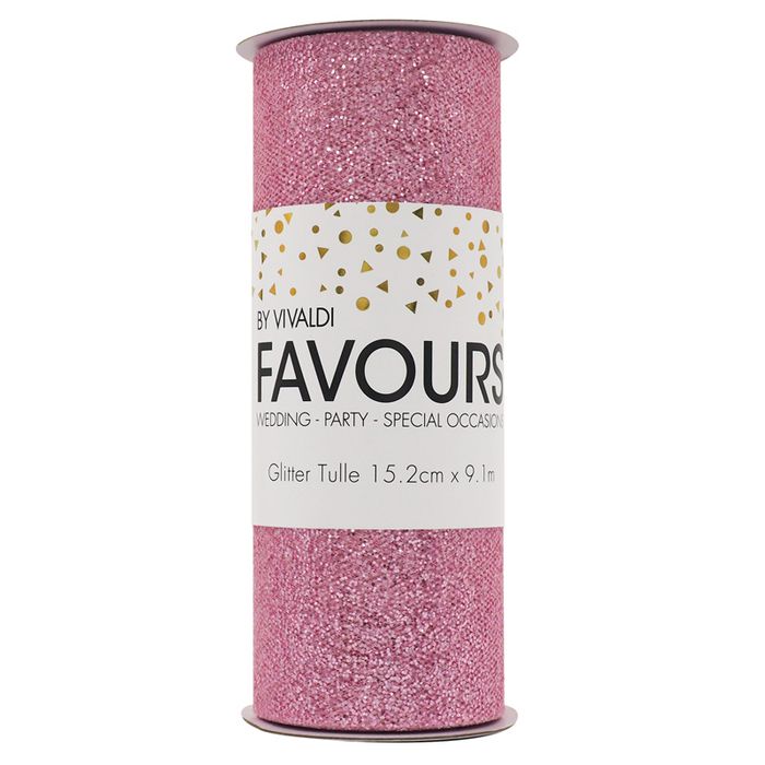 Ribbon Glitter Tulle 15.2cmx 9.1m Pink