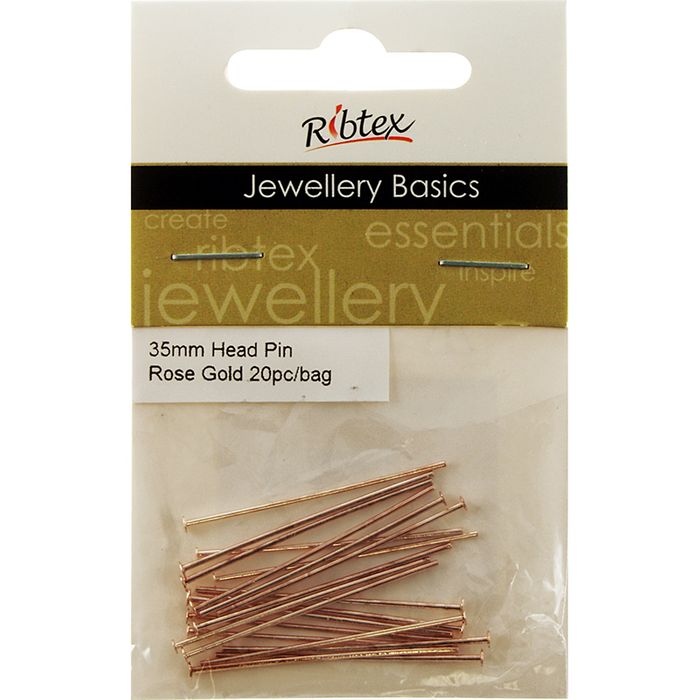 - Head Pins 35mm Rose Gold 20Pcs