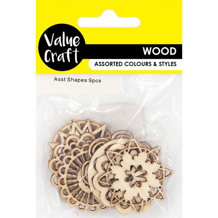 - WOOD FLOWER SHAPES ASSORTED 9PC