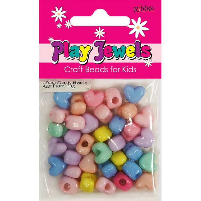 - Bead 12Mm Plastic Heart Pastel Asst 20G