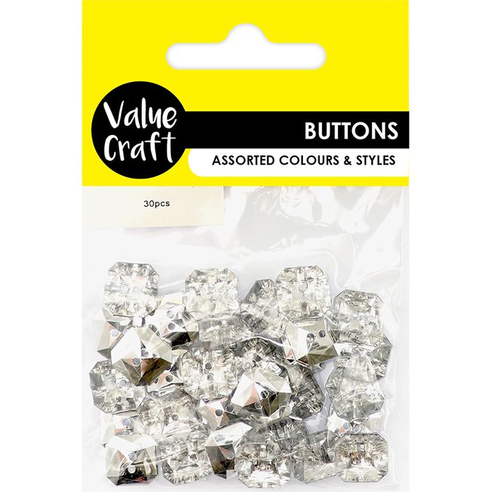 - Button 17Mm Square Clr 30Pcs