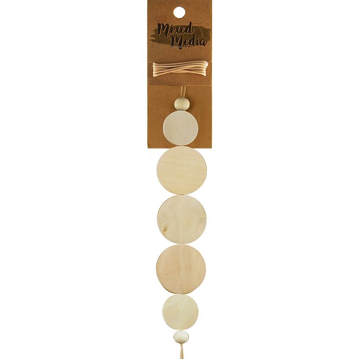 2 x 8mm Round + 2 x 25mm Disc + 3 x 35mm Disc Wooden W 1M Polyester Twine